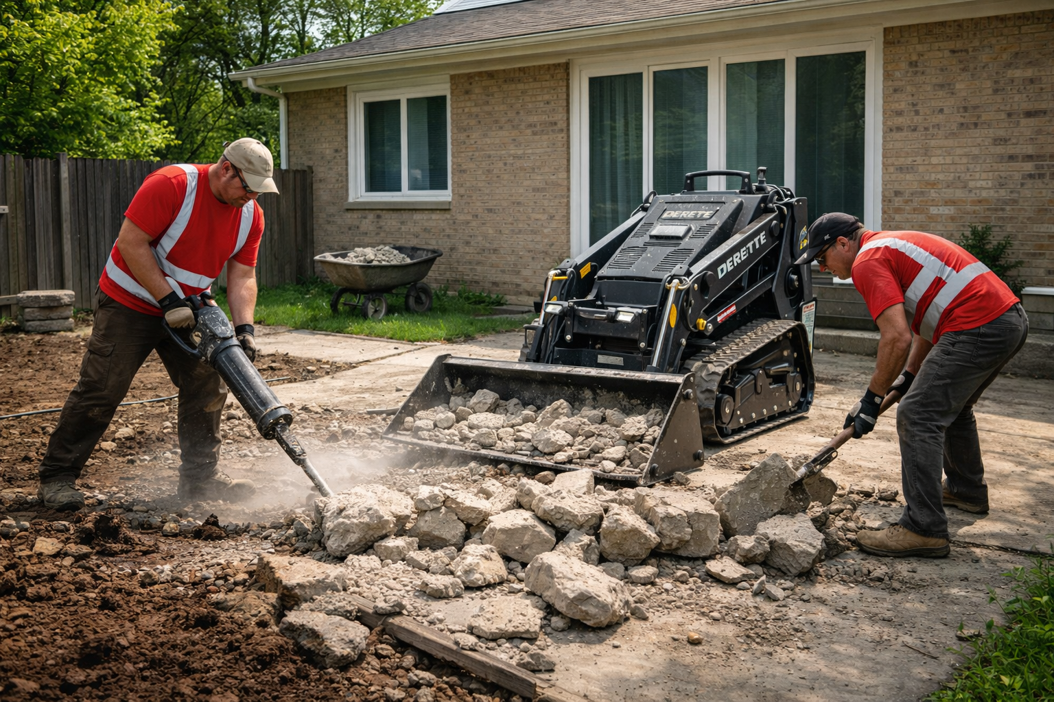Whether itβs a broken driveway, sidewalk slabs, patio concrete, or a small concrete pad, our crew has the equipment to break it up, load it, and haul it away β clean and hassle-free.